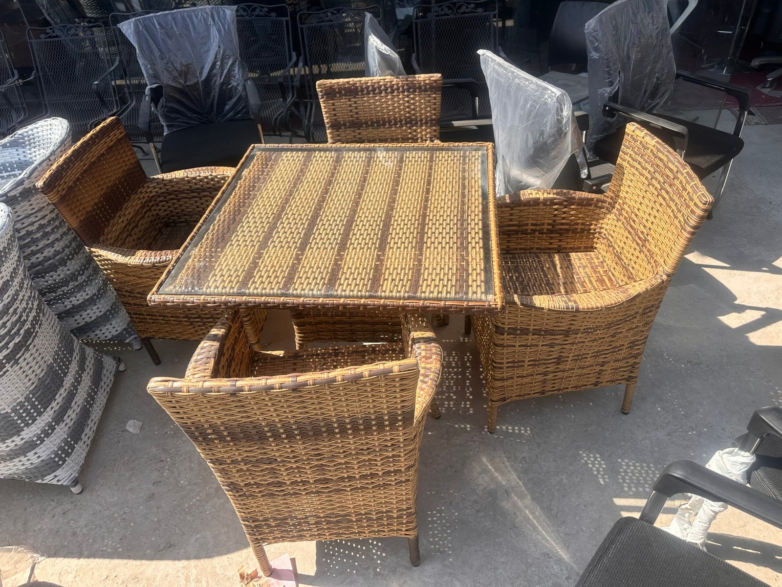 Be the first to review “5-Piece All-Weather Rattan Patio Dining Set | Glass Top Square Table”