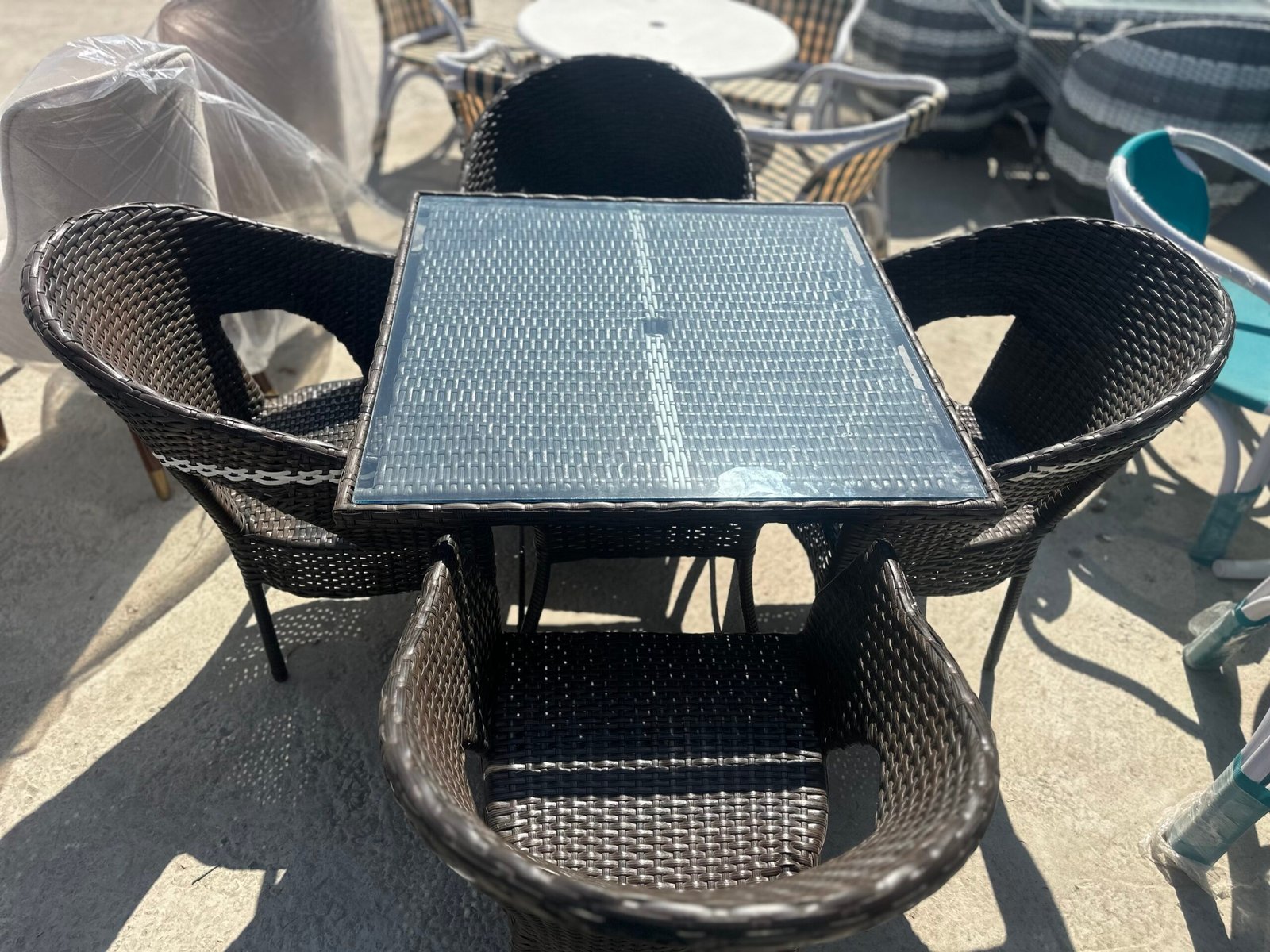 Upgrade your outdoor living space with this elegant 5-piece wicker dining set. Crafted from high-quality, weather-resistant PE rattan, this set includes a square tempered glass-top table and four ergonomically designed bucket chairs for maximum comfort. Whether you’re hosting a backyard brunch or enjoying a quiet evening on the balcony, the reinforced steel frames and UV-protected weave ensure long-lasting durability.