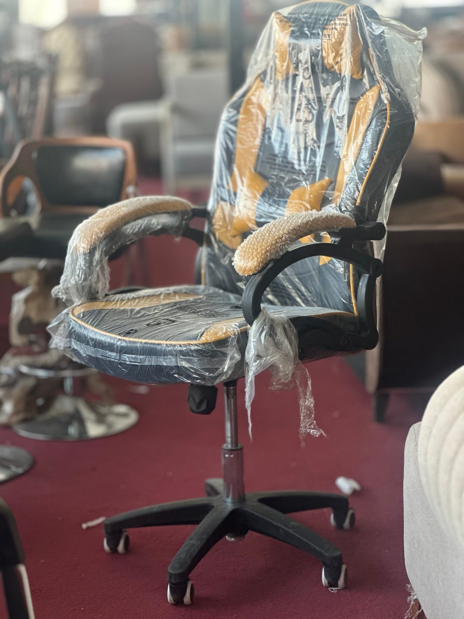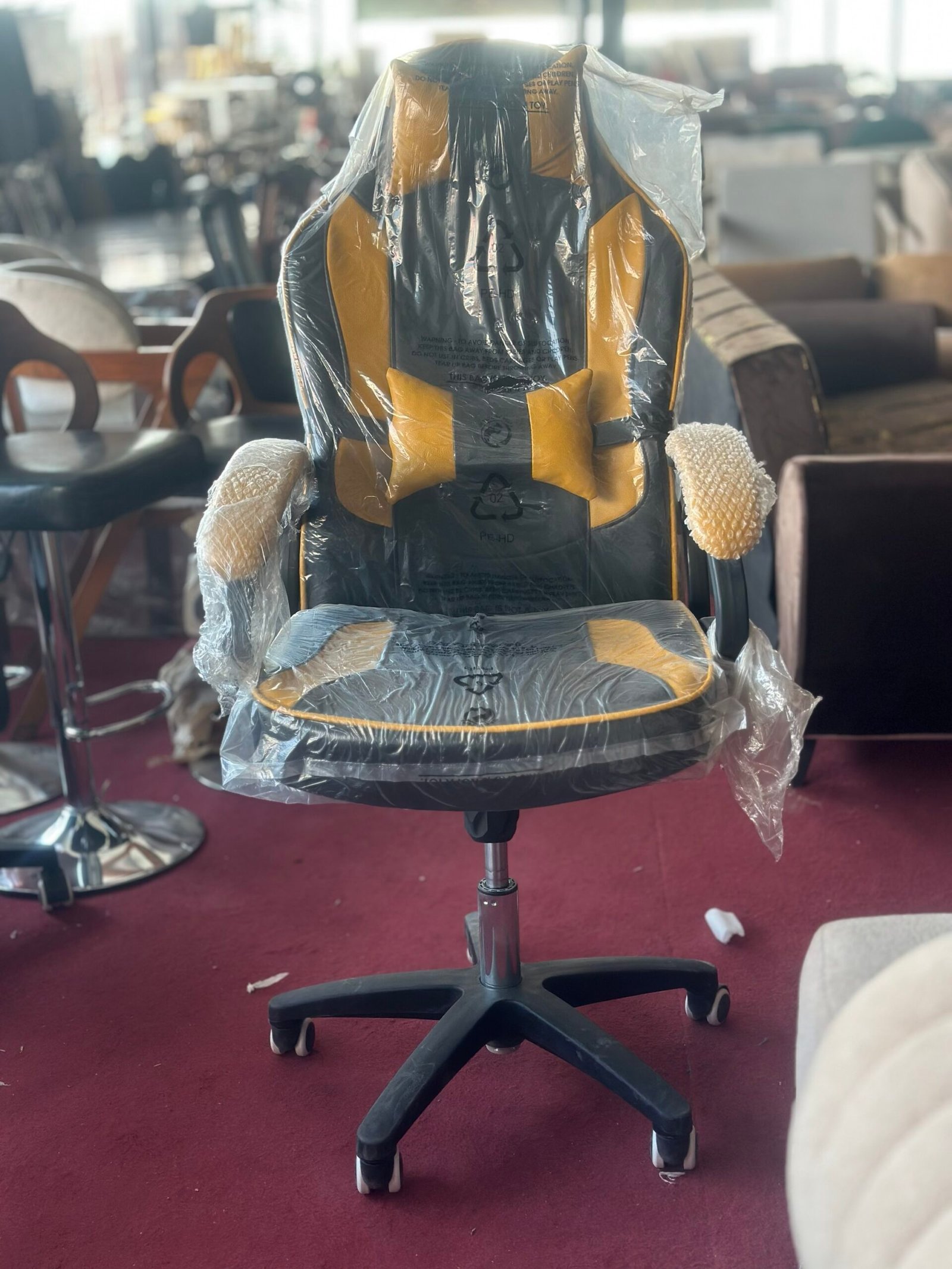 Level up your setup with this high-back racing gaming chair. Featuring adjustable lumbar and neck pillows, comfortable padded armrests, and a striking black and yellow contrast design. Perfect for long gaming sessions or home office work.