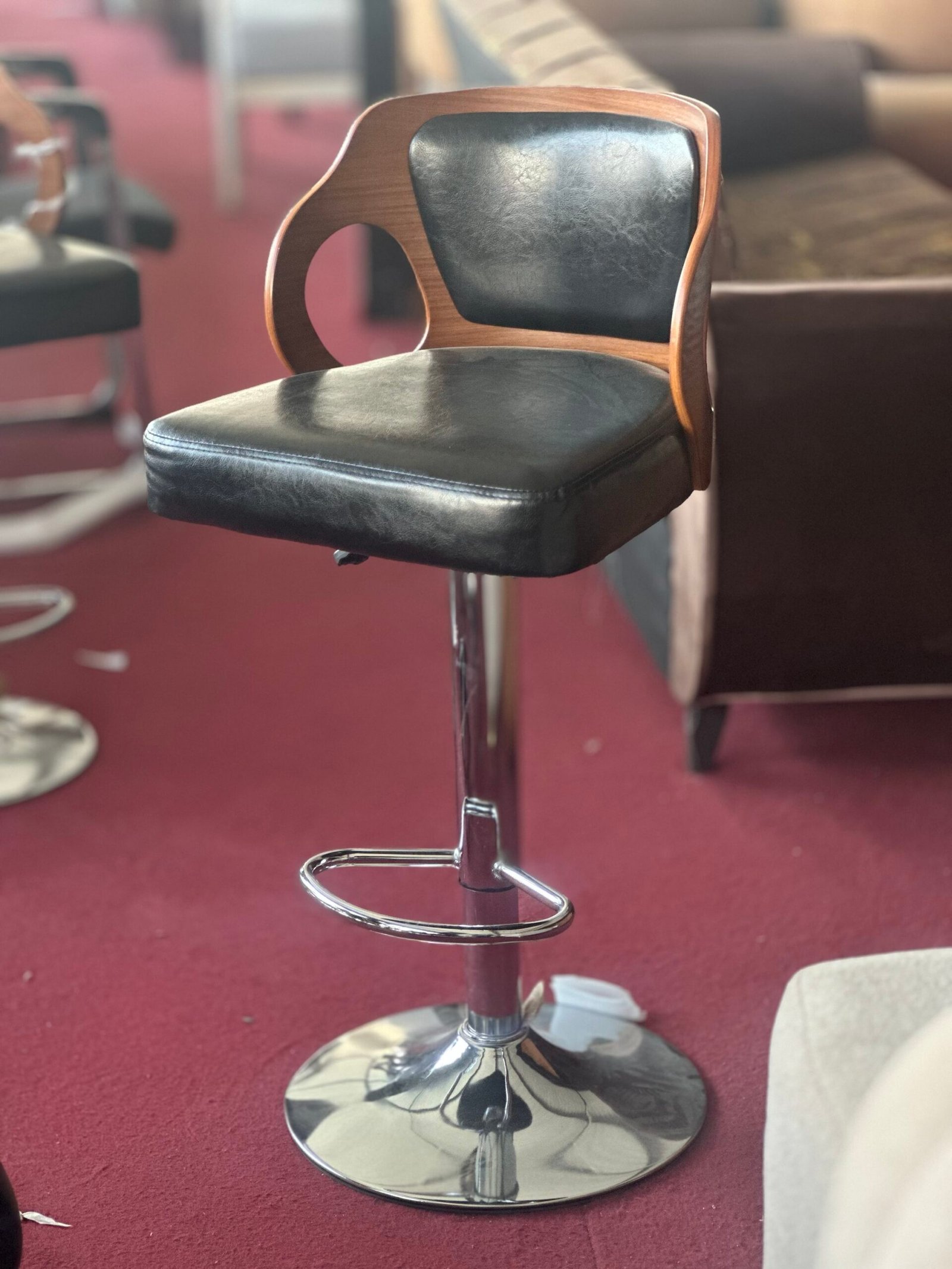 Mid-Century Modern Swivel Bar Stool – Bentwood Frame with Black Faux Leather Seat