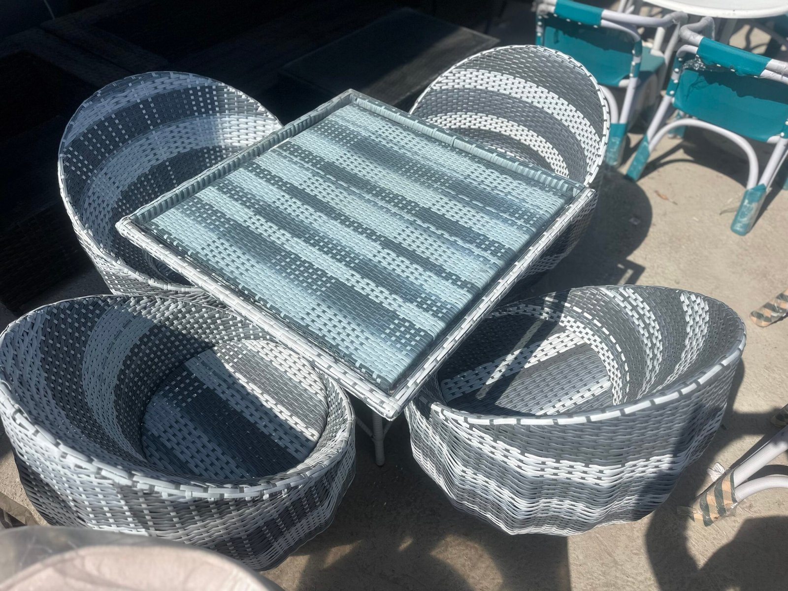 Modern 5-Piece Grey Wicker Patio Set – Space-Saving Nesting Design