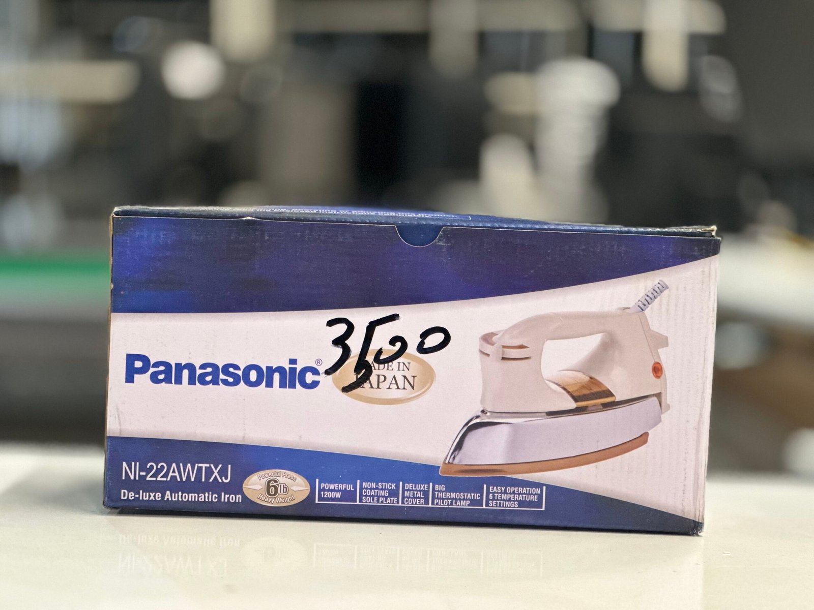 Panasonic iron, Panasonic deluxe automatic iron, 1200W iron, non-stick soleplate iron, made in Japan iron, automatic dry iron, Panasonic home appliances, powerful iron for clothes, deluxe iron Japan, Panasonic 1200W iron, high quality iron, wrinkle free iron, best iron in Pakistan, lightweight dry iron, Panasonic deluxe series, Islamabad Auctioneers appliances