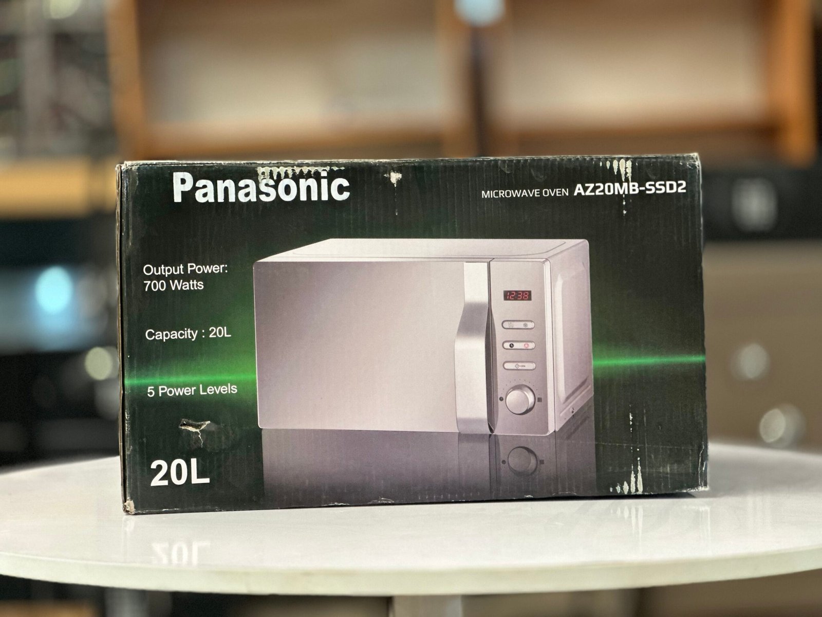 Panasonic microwave oven, Panasonic AZ20MB-SSD2, 20L microwave oven, 700W microwave oven, compact microwave, kitchen microwave oven, microwave with 5 power levels, Panasonic home appliances, microwave for reheating and cooking, energy efficient microwave, countertop microwave, durable microwave oven, Japanese technology microwave, best microwave in Pakistan, Islamabad Auctioneers microwave, Panasonic oven 20L